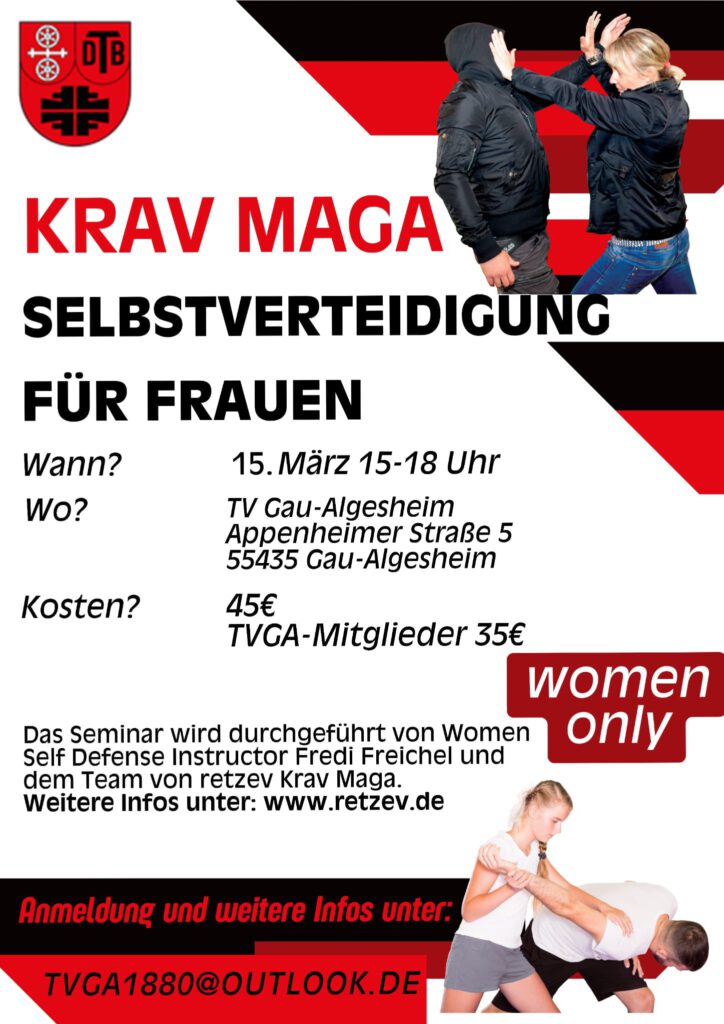 Wir sind am 15. März Gast beim Turnverein 1880 Gau-Algesheim und veranstalten ein STAY AWAY Seminar (women only).
